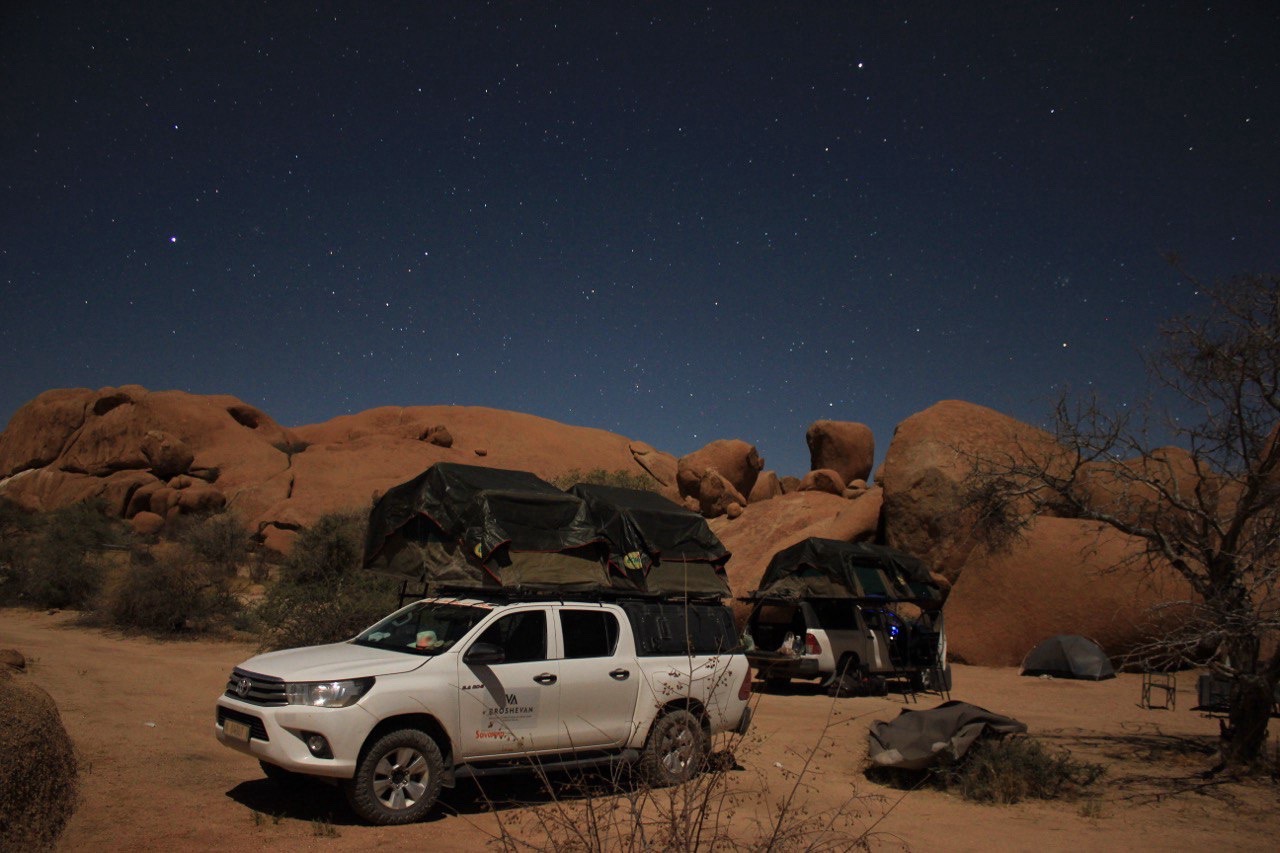 Ryte po pusryčių (įskaičiuota) vykstame žiūrėti senovinių uolų piešinių – kai kuriems iš jų iki 5000 metų. Trumpa kelionė (150 km) iki Spitzkoppe, pasivaikščiojimai po apylinkes. Ši vieta garsėja nuostabiomis granito uolomis ir uoline arka. Naktį čia puikiai matosi žvaigždės – nėra šviesos taršos ir oras skaidrus bei sausas. Nakvynė ir vakarienė stovyklavietėje.